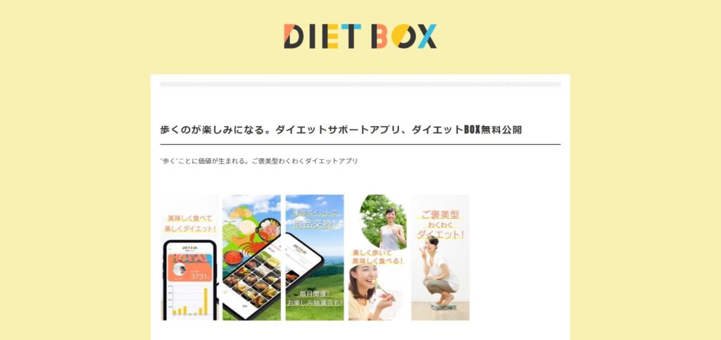 ダイエットボックスは歩いた歩数に合わせてポイントが貰えるアプリで、ポイントは食品と交換することができます。