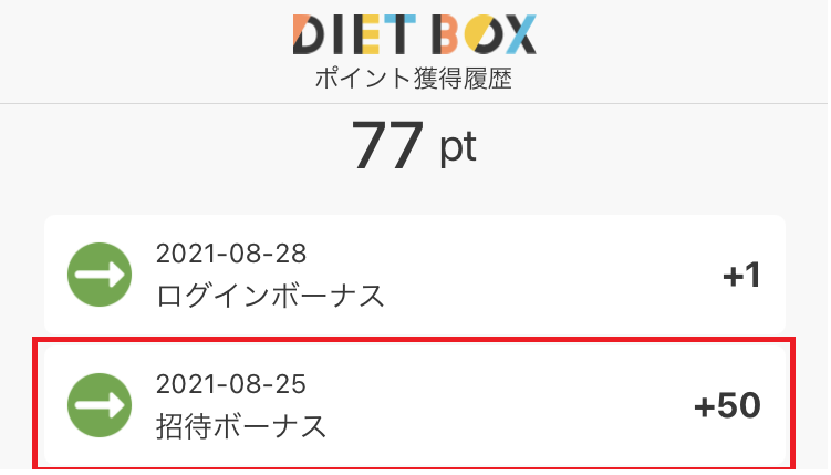 ダイエットボックスは招待コードを利用すれば約5日分に相当する50Pをゲットした状態で始めることが出来ます。