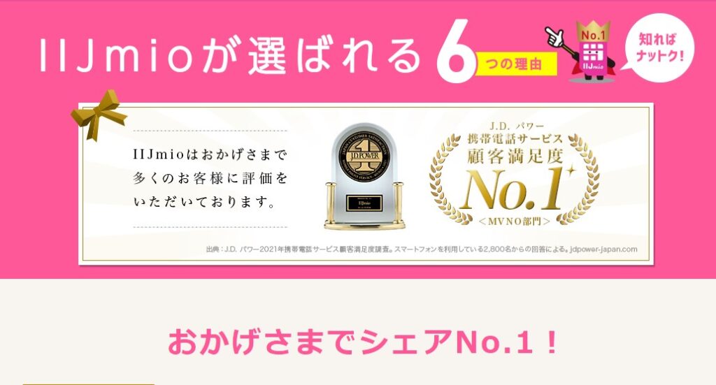 【3位】IIJmio(みおふぉん)