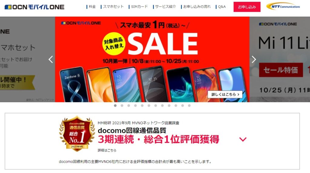 OCNモバイルONEはNTTコミュニケーションズが提供する格安SIMサービスです。