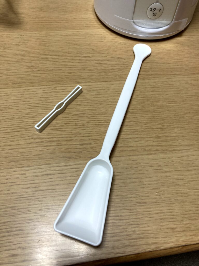 ヨーグルトメーカーに付属している牛乳パックを留めるためのクリップとかき混ぜるための棒を洗剤を使って洗い、最後に熱湯をかけて消毒をします。