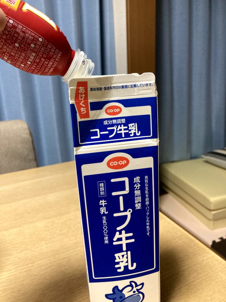 今回は1,000mlの分量で作るため、牛乳パックを開けたら100mlを別の容器に移して900mlになるように調整します。